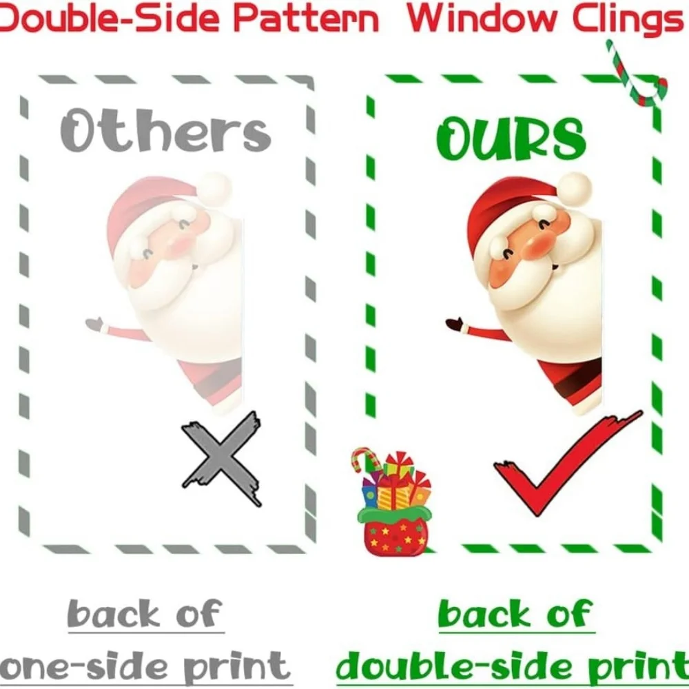 Double-Side Christmas Window Clings: These window clings have Double-Side patterns, the means that you can see him when you stick them on the window, no matter indoor or outdoor.