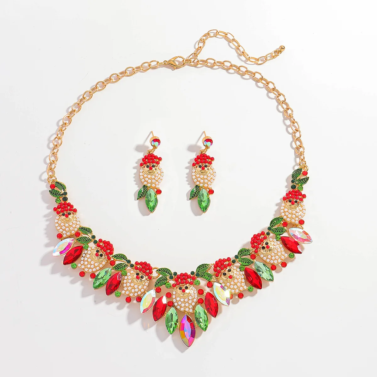 Fashion Christmas Santa Pearl & Rhinestone Jewelry Set | Perfect Gift for Women