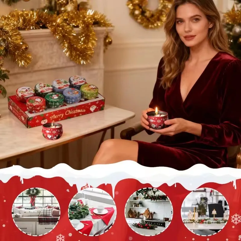 Holiday Decor 8-Piece Christmas Candles:Scented Decorative Candles – Ideal for Christmas Party, Family Gathering Relaxing Spaces