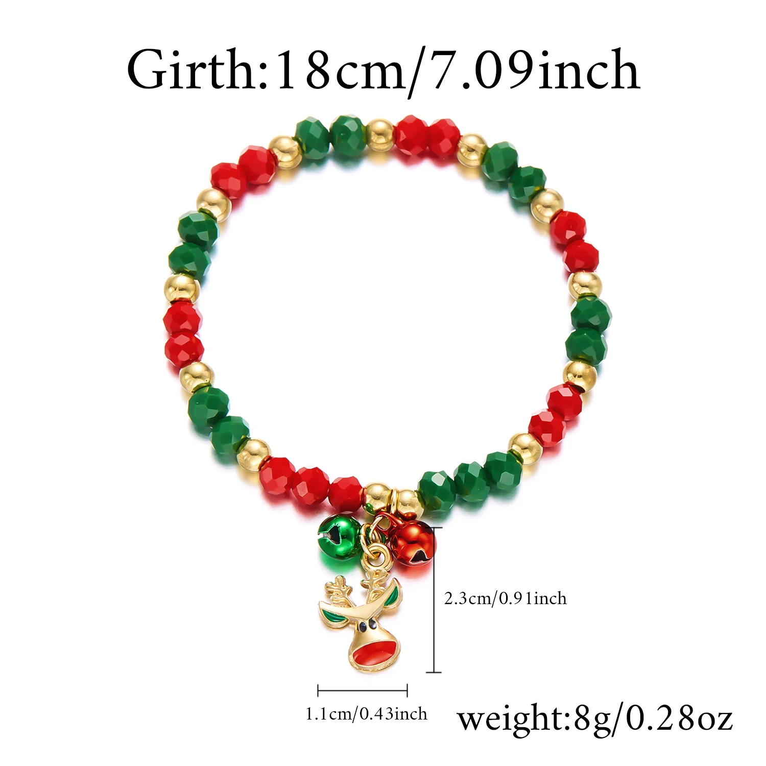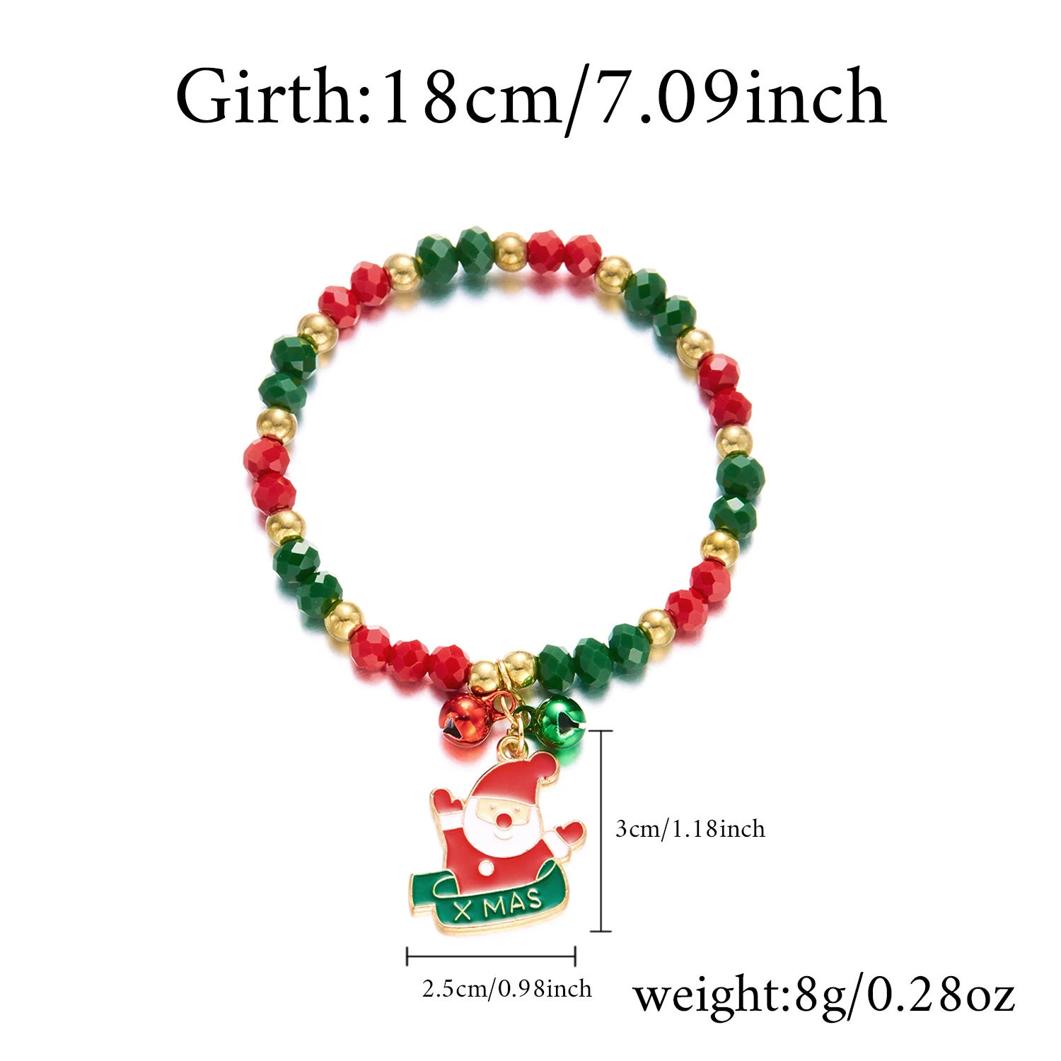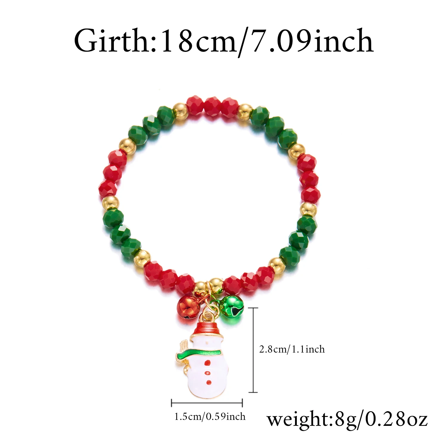 Trendy Small Crystal Bead Xmas Bracelet for Women Men Fashion Handmade Christmas Tree Snowman Elastic Bracelet Jewelry Gifts