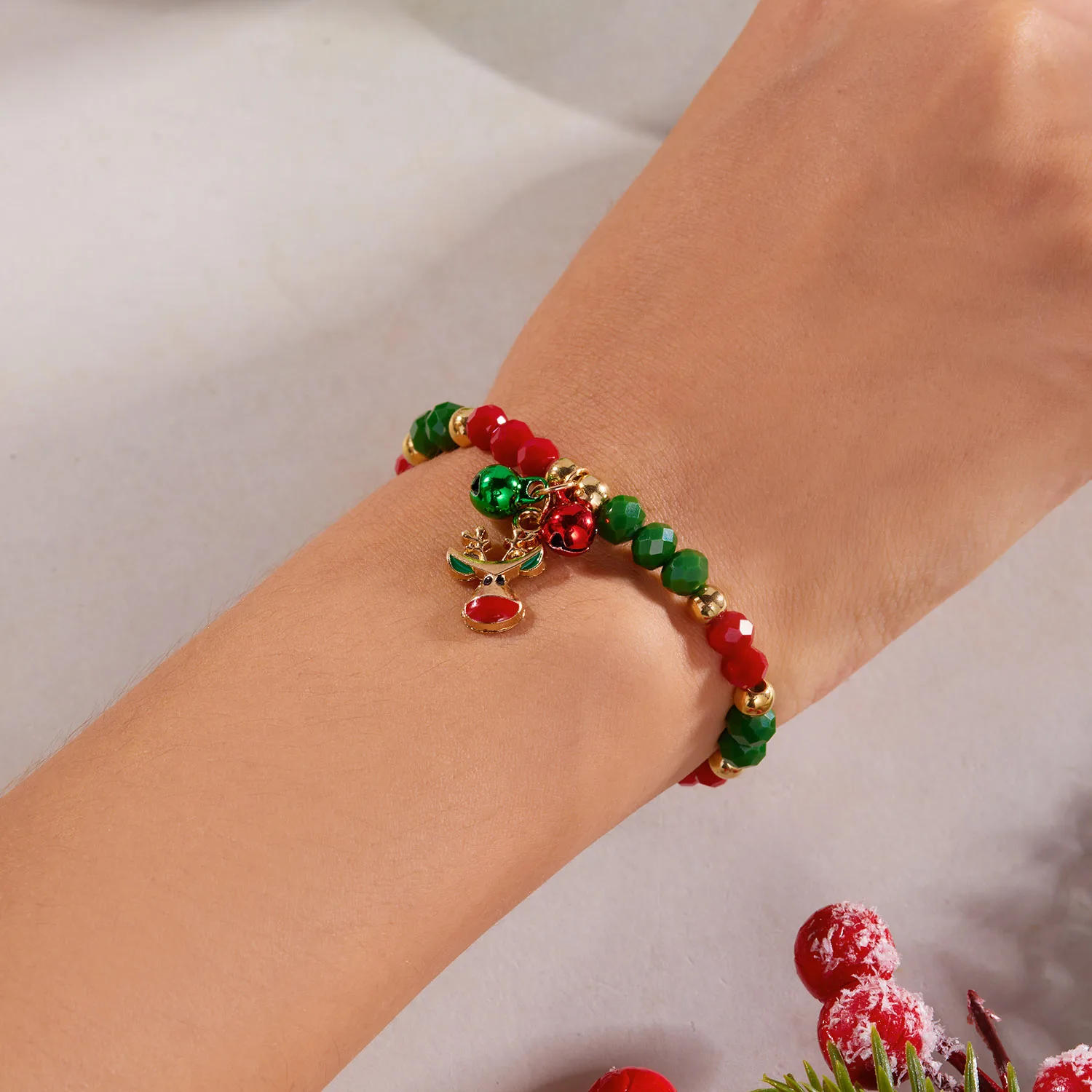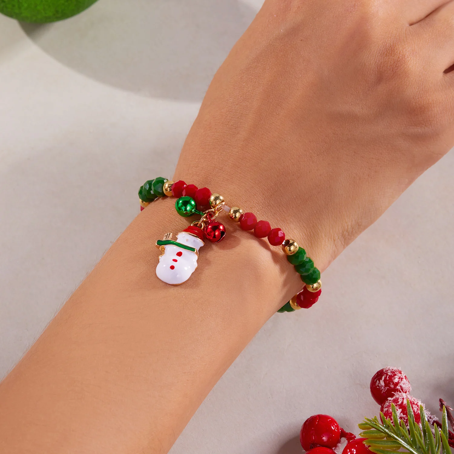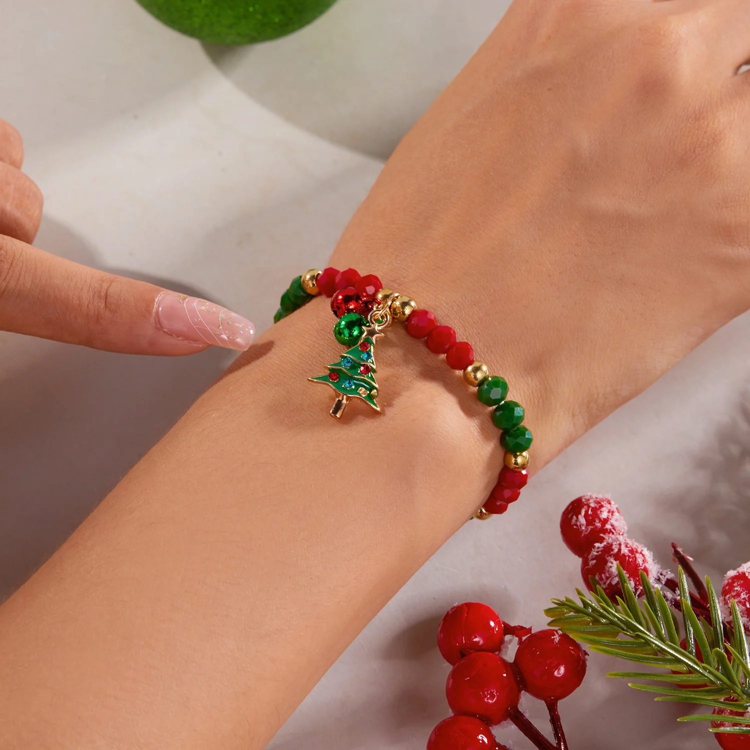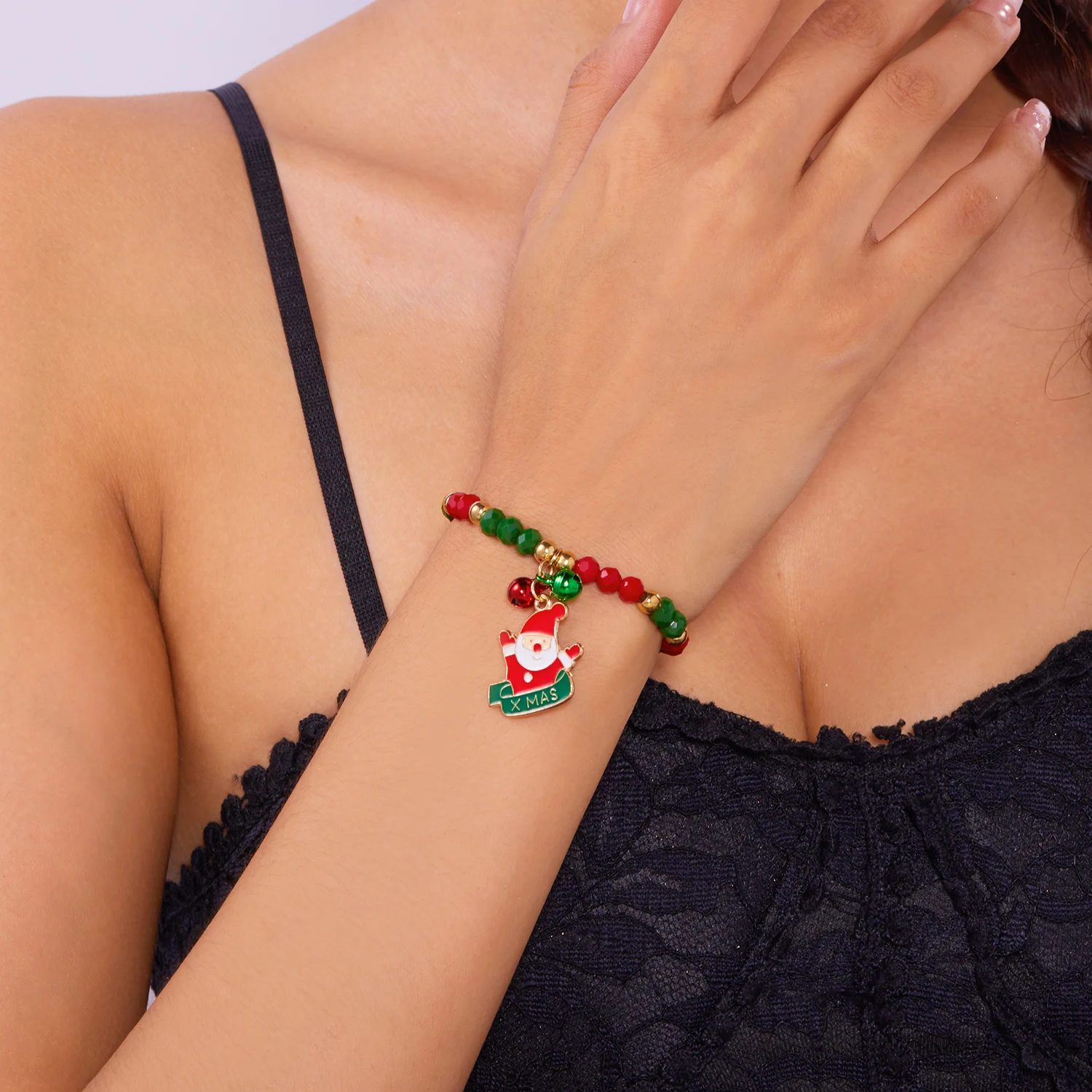 Trendy Small Crystal Bead Xmas Bracelet for Women Men Fashion Handmade Christmas Tree Snowman Elastic Bracelet Jewelry Gifts