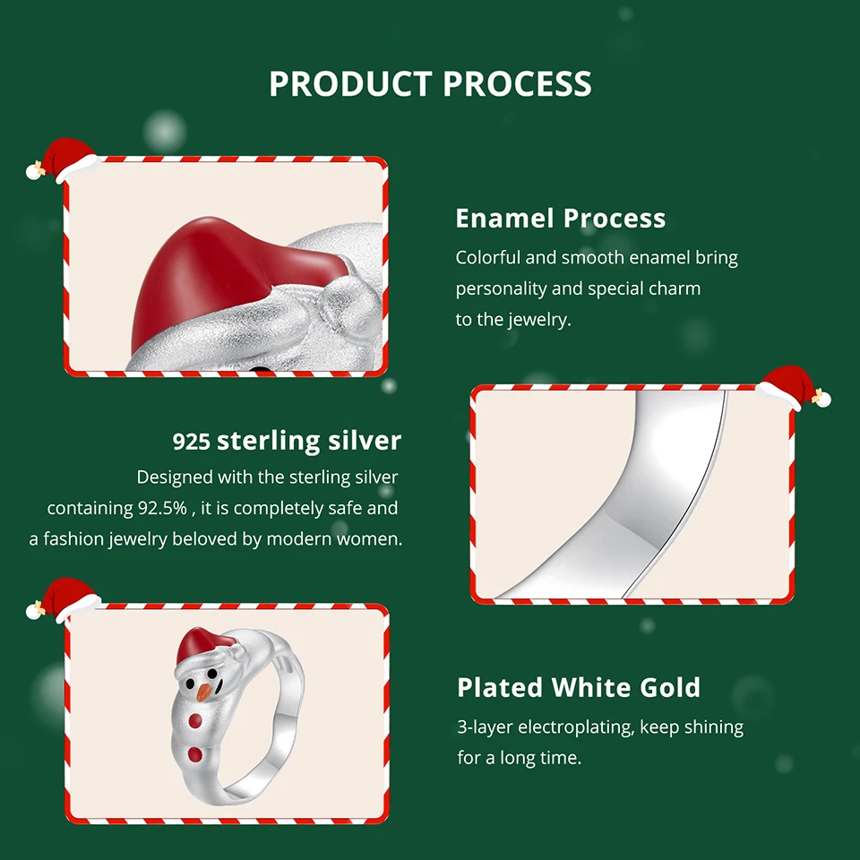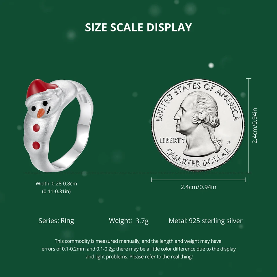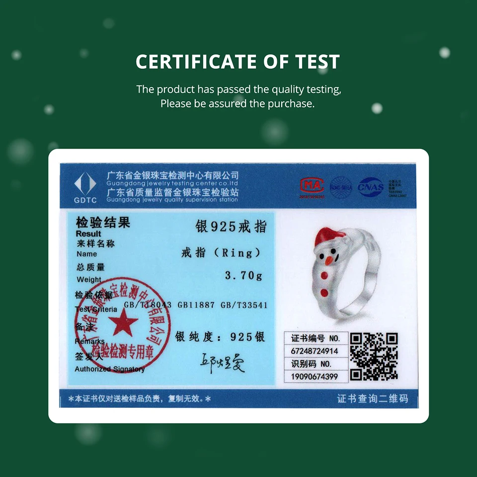 Certificate Number: WOSTU Xmas Jewelry Gift Christmas Snowman ring For Women 925 Sterling